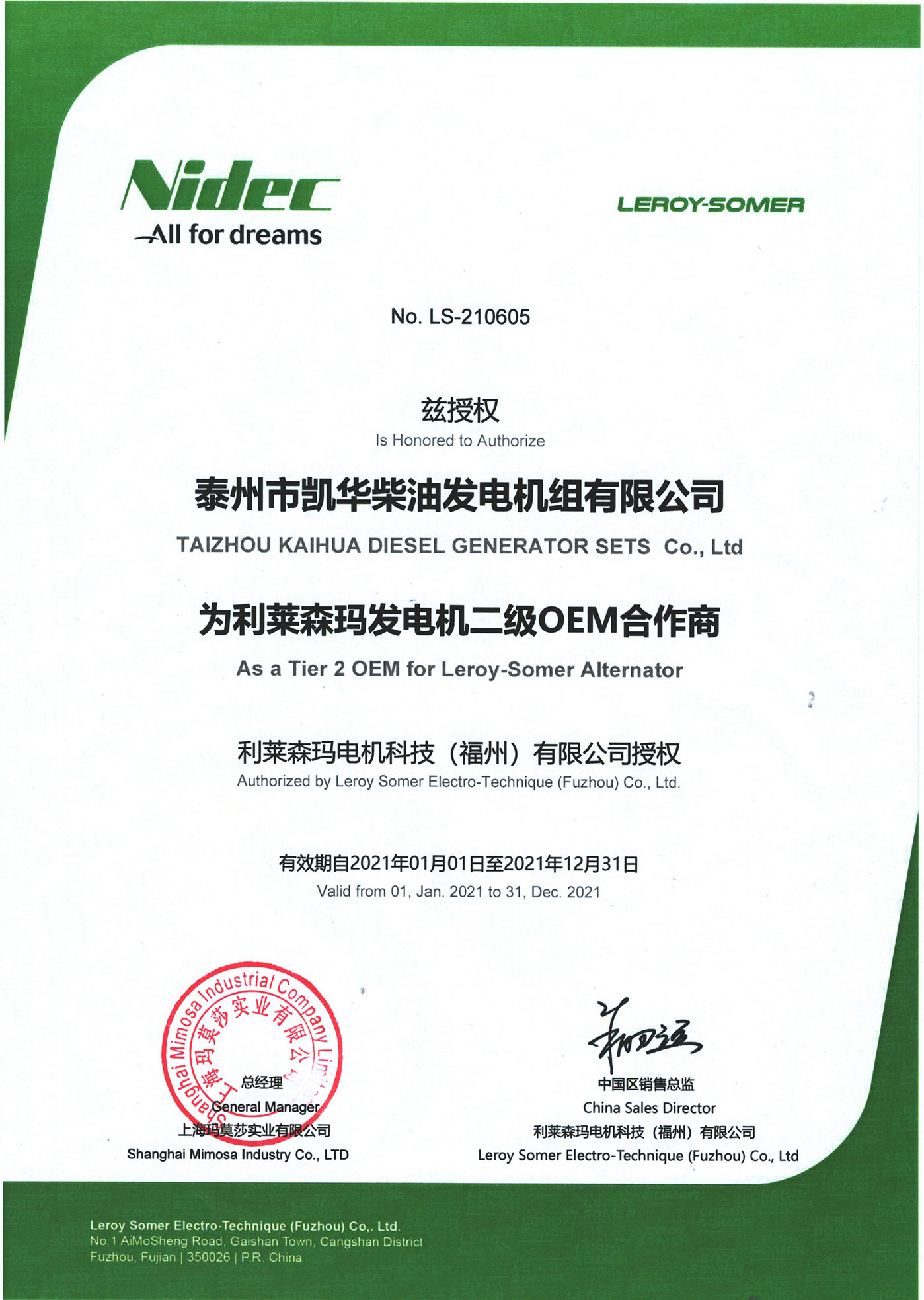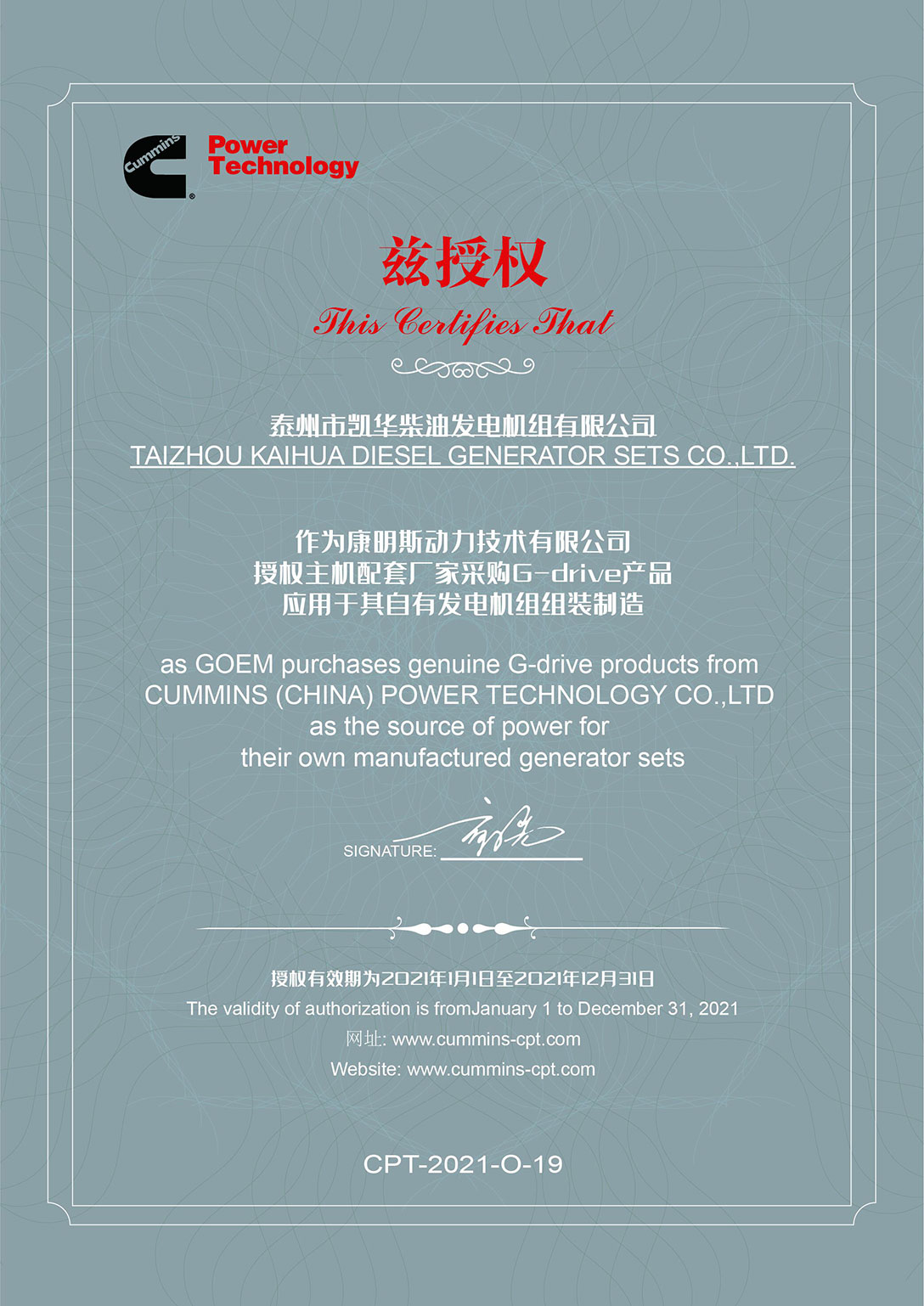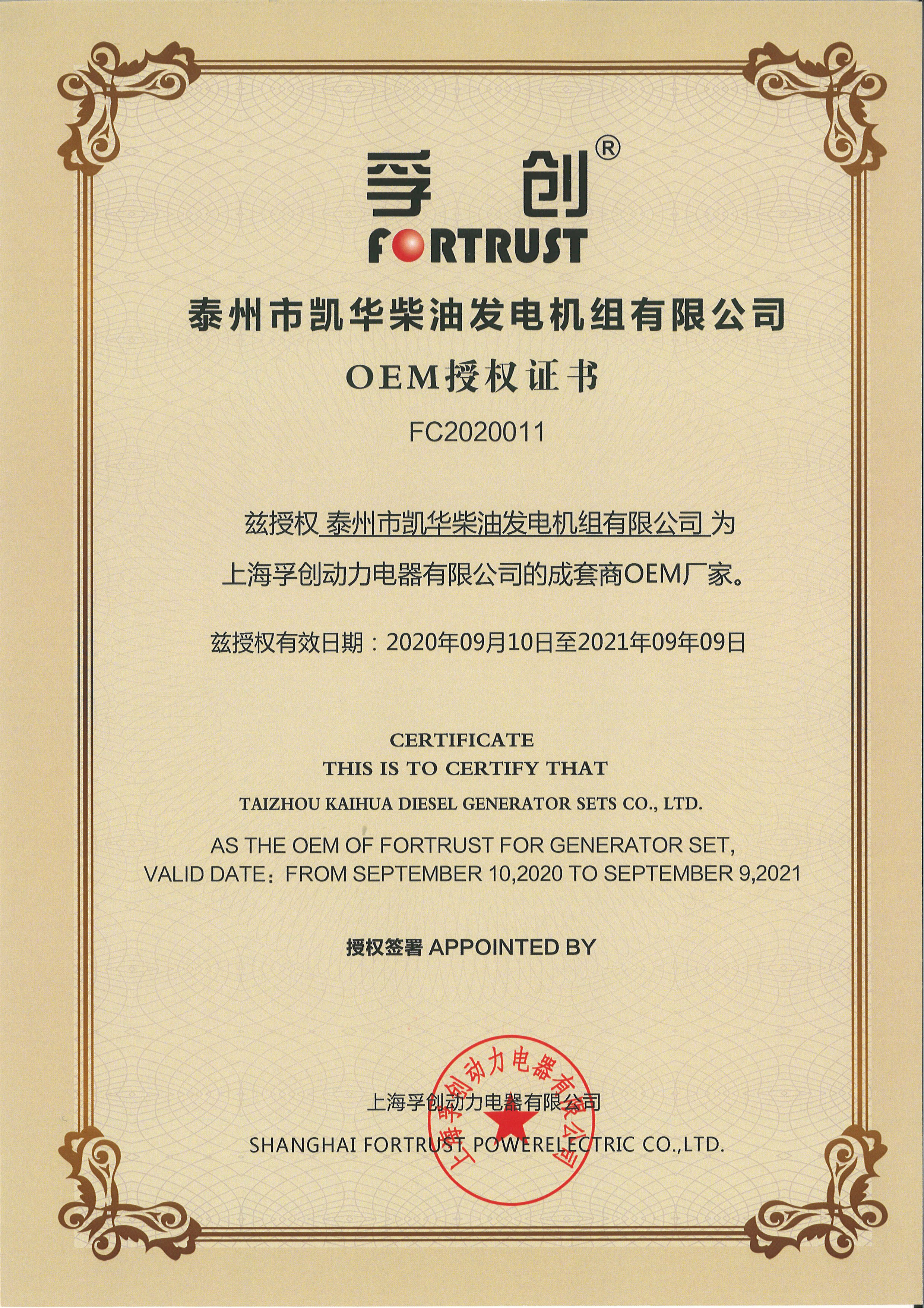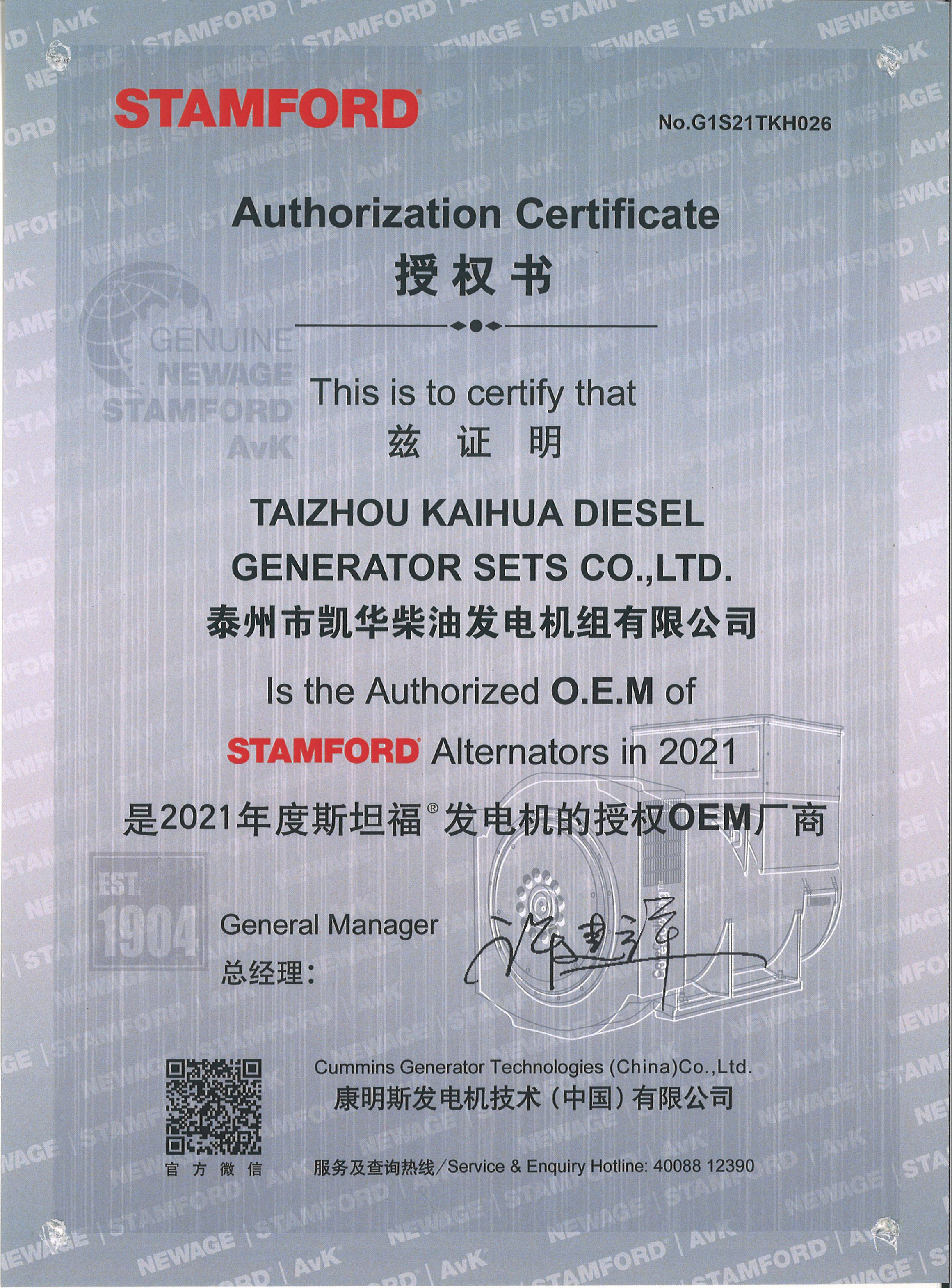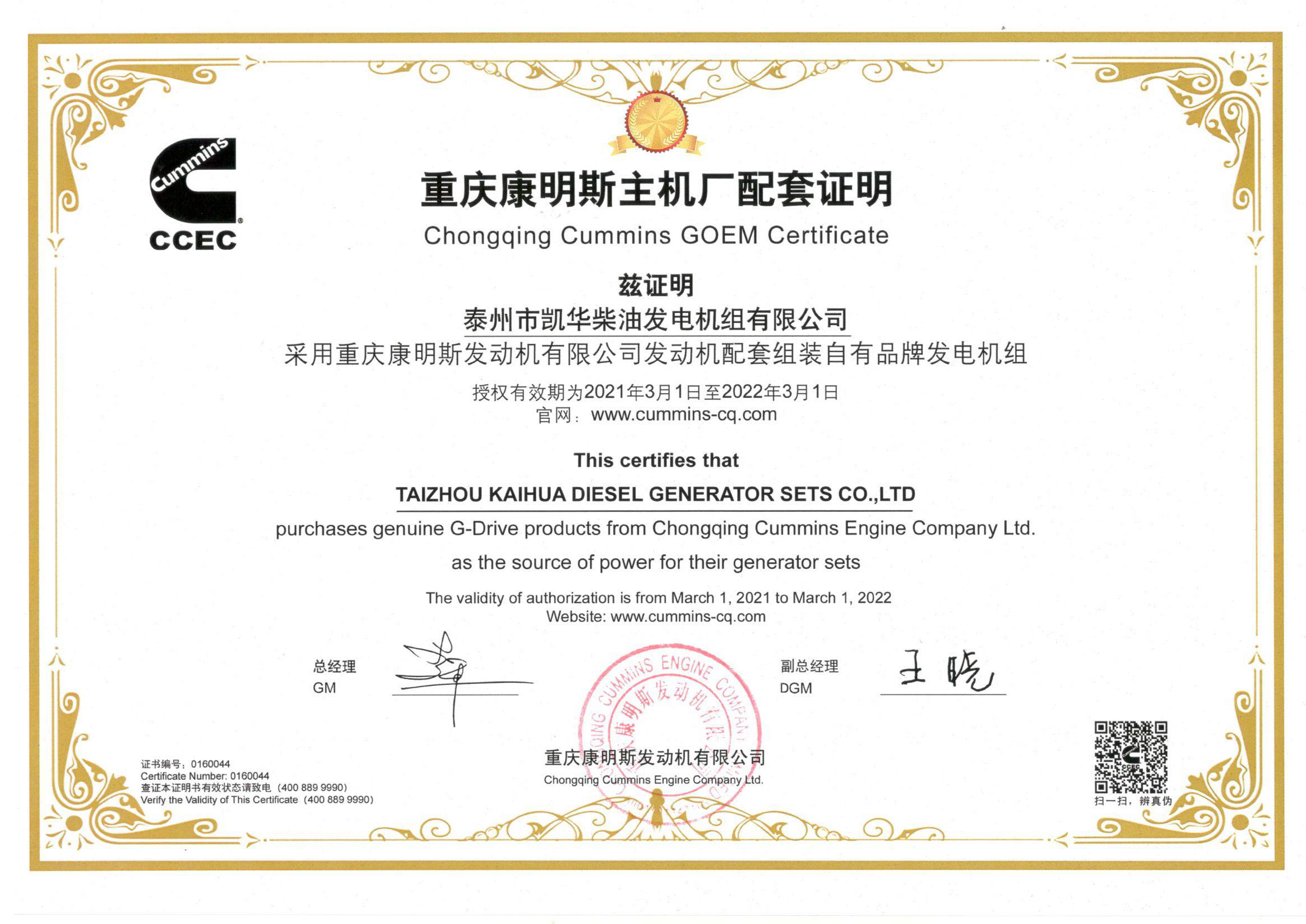 泰州市凱華柴油發(fā)電機組有限公司創(chuàng)建于2003年,是一家集柴油發(fā)電機組燃氣發(fā)電機組的研發(fā)、生產(chǎn)、銷售為一體的高新技術民營企業(yè),公司座落于“漢唐古郡,淮海名區(qū)”,具有“鳳凰城”美稱的祥泰之州——江蘇省泰州市,地處中國經(jīng)濟最發(fā)達的長三角經(jīng)濟圈,水陸空立體交通,地理位置十分優(yōu)越。公司目前注冊資本金11800萬元人民幣,生產(chǎn)基地占地六十畝,現(xiàn)有各類高素質員工一百多名,專業(yè)技術人員達46人,其中高級技術人員16人,年銷售額近6億元。 公司主營產(chǎn)品:3~3000KW陸用柴油發(fā)電機組,15~600KW移動拖車電站,12~1000KW船用應急柴油發(fā)電機組,各種靜音型、中高壓、多機并聯(lián)、燃氣等特種機組以及進口系列柴油發(fā)電機組,可滿足不同客戶的一切電力需求,還可滿足用戶不同電壓、不同頻率的要求。凱華公司是康明斯品牌的授權代理商,專業(yè)生產(chǎn)供應康明斯柴油發(fā)電機組。